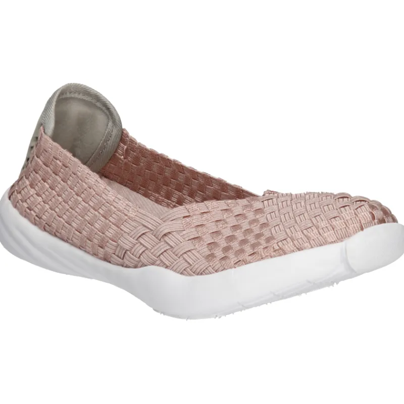 Kävelykengissä on avara suuaukko ja tuettu kantapää pukemista helpottavilla venykkeillä. Kaunis vaaleanpunainen punottu kuosi, valkoinen ulkopohja.