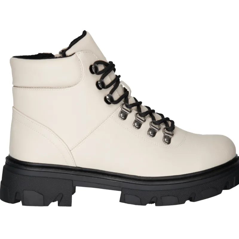 Naisten 2Moons Molan-nilkkurit nauhallisella mallilla. Päällisen materiaalina on polyuretaani, sisäpuolella on keinotekoinen karvavuori sekä huopapohjallinen. Paksussa ulkopohjassa on rouhea pitokuviointi.