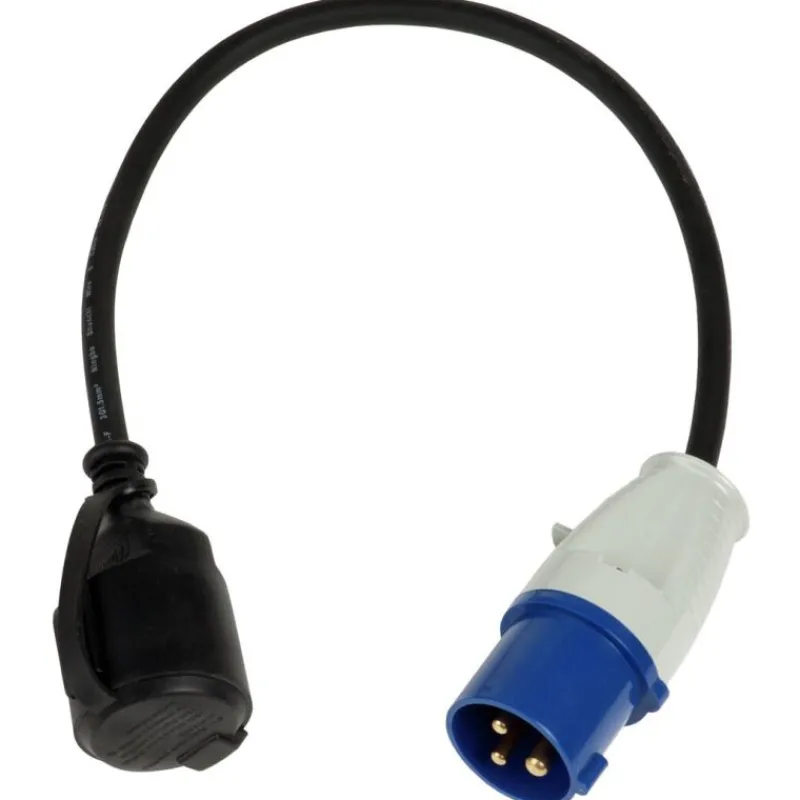 Jatkojohto/adapteri on tarkoitettu asuntovaunu-, asuntoauto- ja veneilijäkäyttöön. 0,5m johdon toisessa päässä on 3-napainen pistotulppa.
