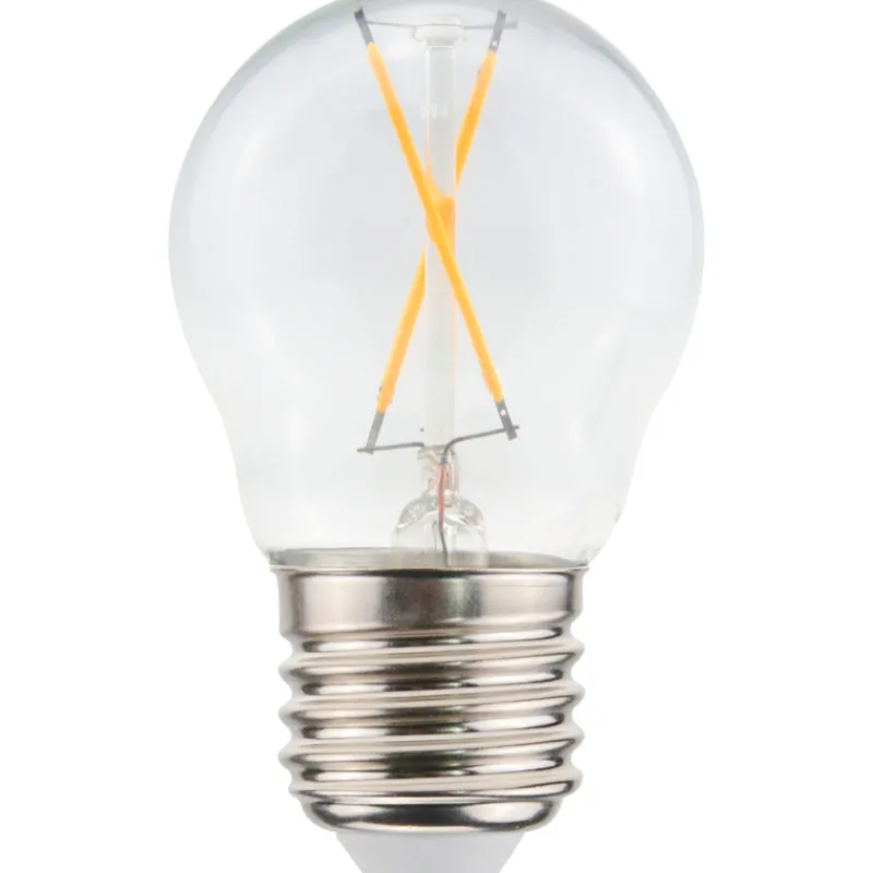 Kirkas pienkupuinen filamentti LED-lamppu 1W 2200K E27 90lm 15000h 45x78mm, kupu lasia. Taajuus ~50/60Hz.