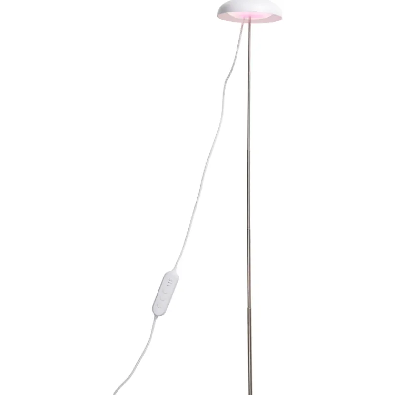 Siro ja sievä kasvivalaisin antaa kasveille tärkeää lisävaloa ja piristää sisustusta. Upota valaisimen varsi suoraan multaan, varren korkeutta voi säätää 100 – 600 mm. Sisäkäyttöön, IP20. Materiaali metalli ja muovi, valkoinen kupu. Led kiinteä 5 W 240 lm 3500 K. 5-portainen himmennys, 3-portainen ajastus. USB-A-liitäntä.
