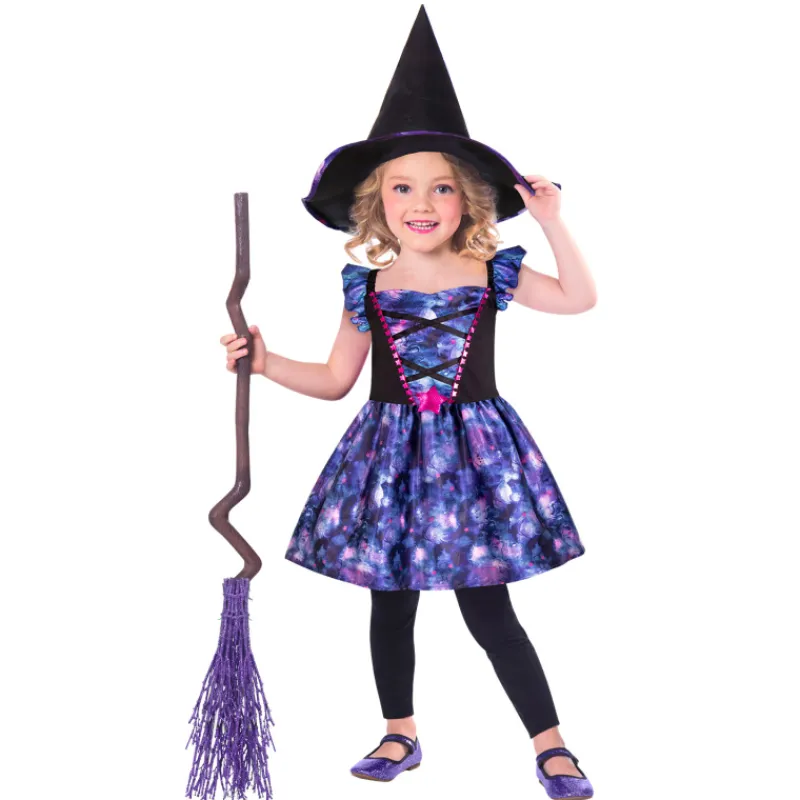 Lasten noita-asu sopii täydellisesti Halloween-juhliin. Asu soveltuu noin 4-6-vuotiaille lapsille. Materiaali 100 % polyesteria.