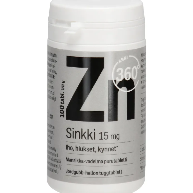 Arki 360u00b0 Terveysravinteet Ja -valmisteet^Sinkki 100 Kpl 15 Mg Mansikka-vadelma