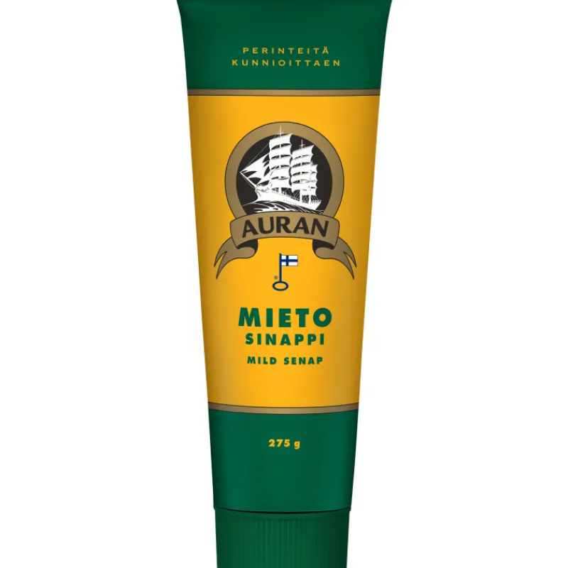 Auran mieto sinappi on valmistettu Suomen Turussa, perinteitä kunnioittaen. Pakkauskoko 275 g.