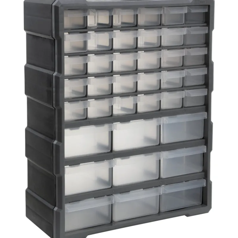Lokerikko, jonka voi kätevästi kiinnittää seinään. Lokerikossa pienet tavarat säilyvät kätevästi. Lokerikossa on yhteensä 39 lokeroa – 30 pientä ja 9 isompaa lokeroa. Stoppari estää lokeroa tippumasta ulosvedettäessä. Mitat: 47,5 x 38,5 x 16,2 cm.
