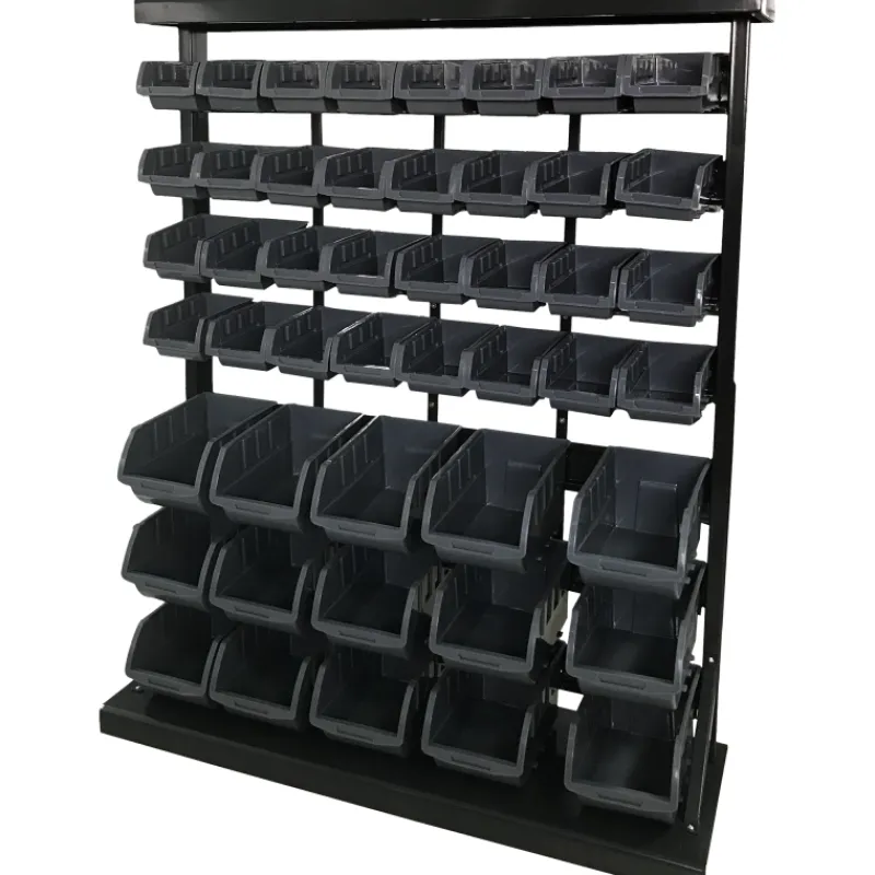 Lattialle sijoitettava teräsrunkoinen Brücke-säilytyslokerikko. 47 osaa: 32 pientä lokeroa (165 x 105 x 75 mm) ja 15 isoa lokeroa (235 x 150 x 125 mm). Lokerot ovat kestävää PP-muovia. Väri harmaa. Mitat: K115 x L90 x S28 cm.