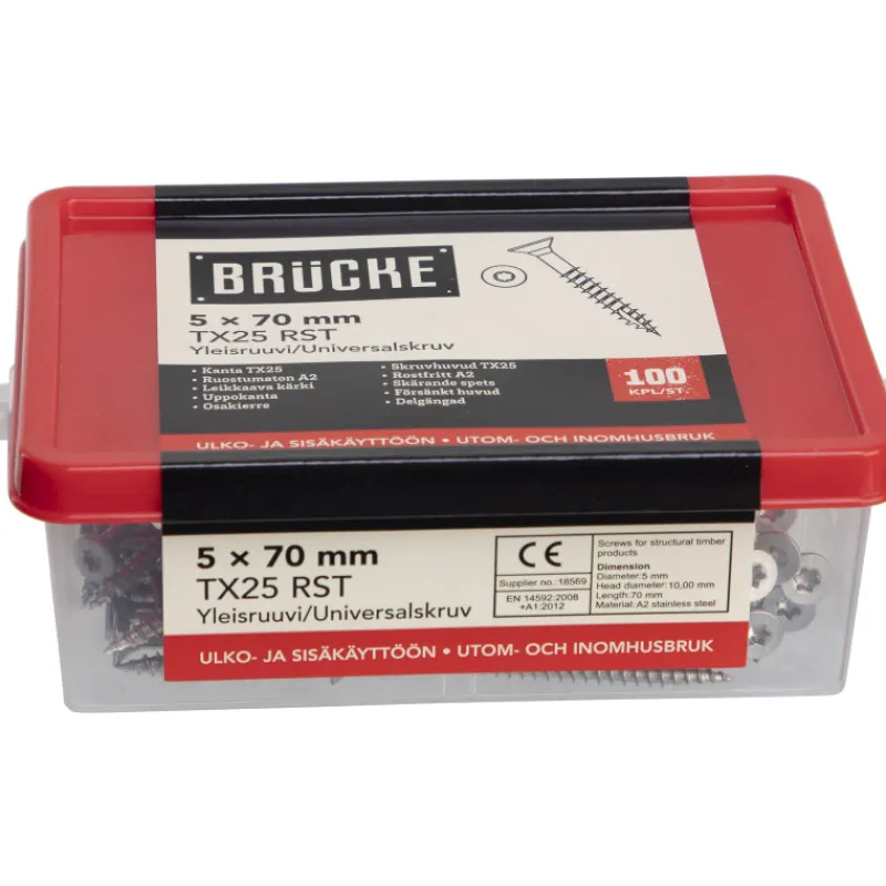Brücke Naulat Ja Ruuvit-Yleisruuvi 5 X 70 Mm, A2, Uppokanta, 100 Kpl