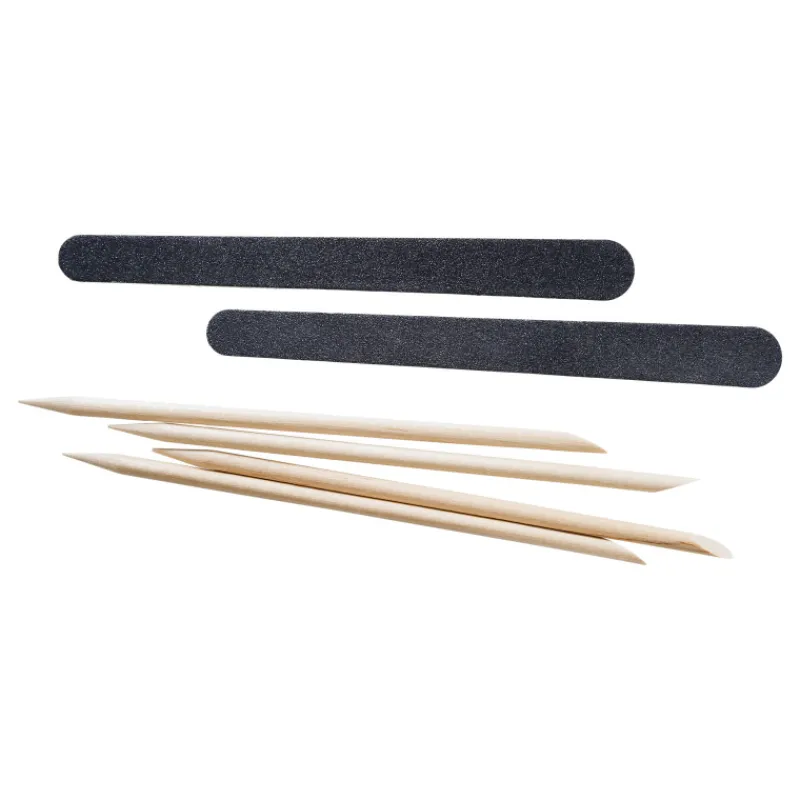 Cailap Manikyyrisetti sisältää kynsien hoitoon tarvittavia manikyyritikkuja sekä kaksipuoleisia hiekkapaperiviiloja. Puisen manikyyritikun avulla voi puhdistaa ja siistiä kynsiä ja kynnen alustaa sekä hoitaa kynsinauhoja. Kierrä pieni määrä pumpulia manikyyritikun päähän, kostuta hoitoöljyyn ja työnnä varovasti kynsinauhoja irti kynnen pinnasta. Sopii myös kynsien lakkausten siistimiseen. Hiekkapaperiviilalla viilaat kynnet hellävaraisemmin sopivan pituisiksi ja siistit rosoiset kynnen reunat tasaisiksi. Kynsiviilan koko on 11 cm.