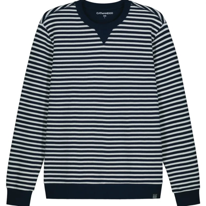 Miesten pitkähihainen Catmandoo-collegepaita raidallisella kuosilla. Materiaalina on ryhdikästä puuvillasekoitetta.