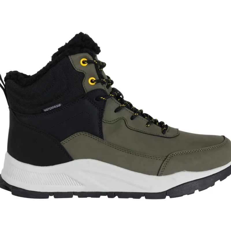 Miesten Catmandoo Cleve-nauhanilkkurit lämpimällä karvavuorilla ja vedenpitävällä ominaisuudella. Päällisen materiaalina on polyuretaania sekä nylonia, sisäpuolella on keinotekoista karvaa sekä vedenpitävää materiaalia oleva vuori. Karvapohjallisessa on myös vedenpitävää EVA-materiaalia. Erittäin paksussa ulkopohjassa on karkea pitokuviointi.