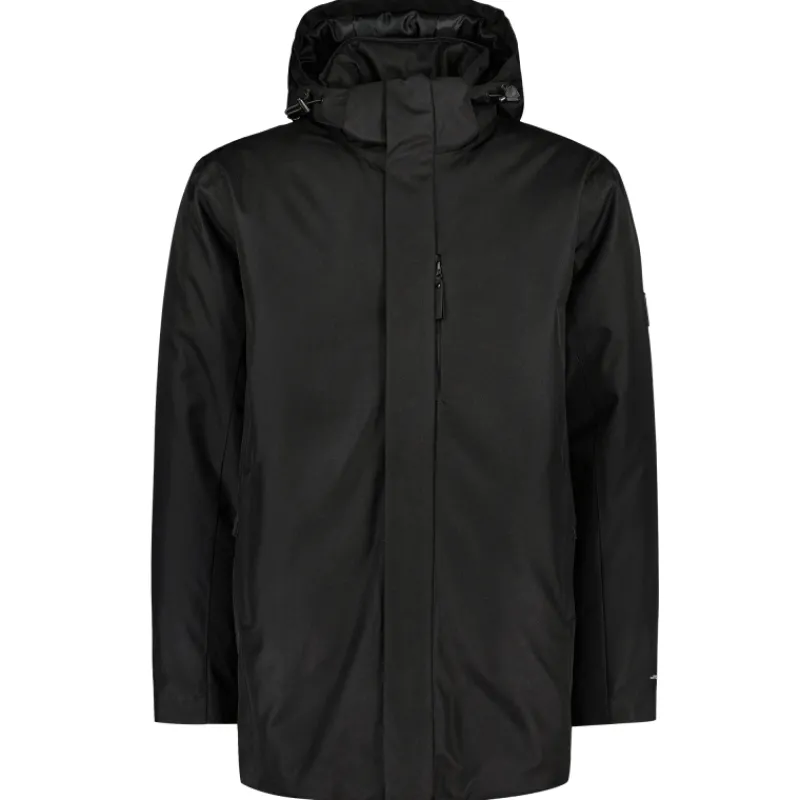 Vedenpitävä miesten toppatakki hupullisella mallilla. Takin sopivasti hengittävä materiaali suojaa kevyeltä sateelta ja tuulelta. Vedenpitäväksi teipatut saumat.