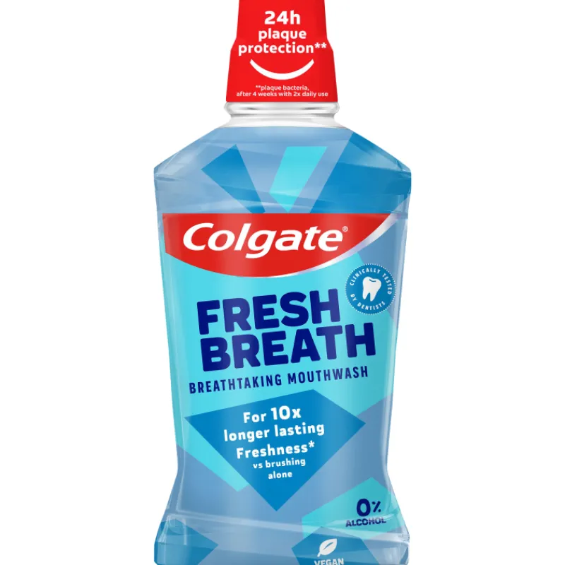 Tunne olosi itsevarmaksi Colgate Breathtaking Fresh Breath -suuveden raikkauden avulla! Suuveden FreshFX-teknologia tekee hengityksestä raikkaan, ilman polttavaa tunnetta. Sen sisältämä fluori auttaa myös ehkäisemään reikiintymistä ja kahdesti päivittäin käytettynä suojaa plakkibakteereilta jopa 24 tunnin ajan.