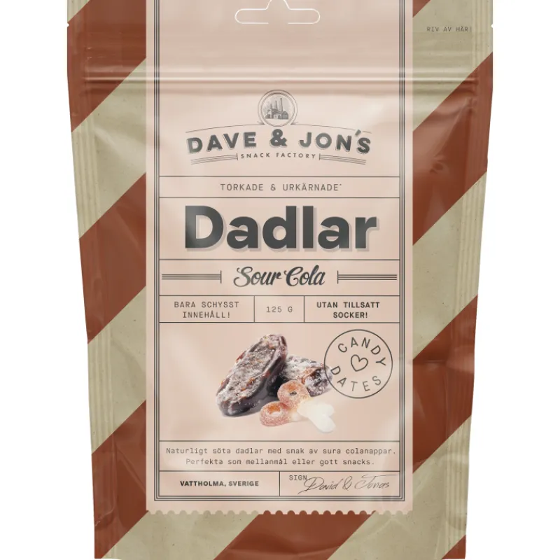 Dave & Jon’s Pähkinät Ja Kuivatut Hedelmät^Taatelit Dace & Jon’s 125 G Hapan Cola-karamelli