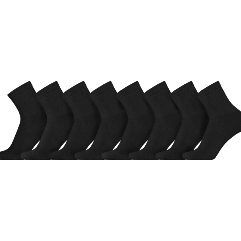Naisten tennissukat 8 pr/pkt, väri musta. Yksi koko 35–39.