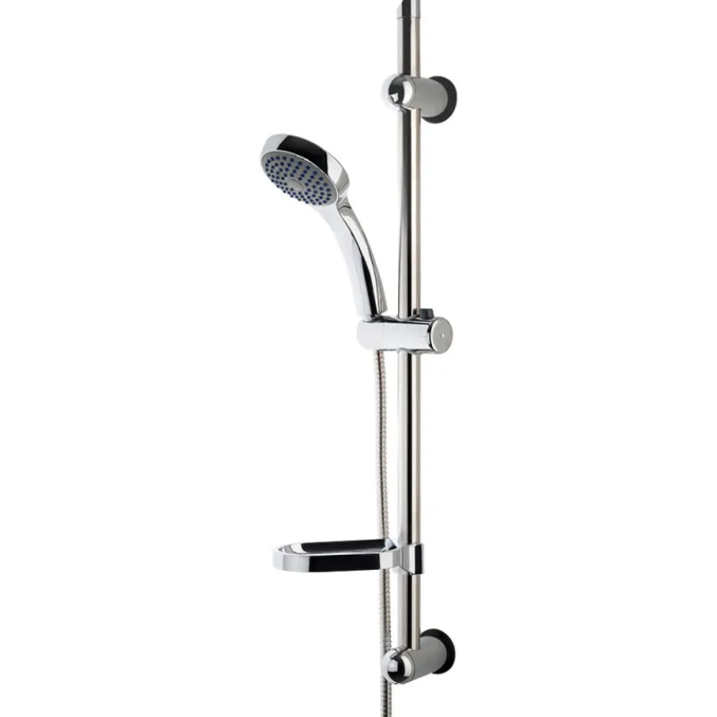 Duschy Miami suihkusetti antaa miellyttävän pehmeän suihkun. 75 cm tanko. Moderni suihkukahva liukuvalla pidikkeellä. Anti-kalk toiminto. 150 cm pitkä suihkuletku. Saippuakuppi. Ylempi kiinnike säädettävä – sopii vanhoihin reikiin. Pituus 750 mm. Materiaali: kromi.