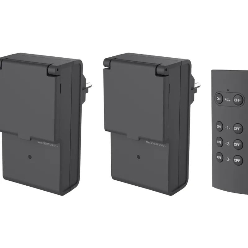 Energy+ Jatkojohdot-Pistorasia Kauko-ohjauksella Ulkokäyttöön 2 Kpl