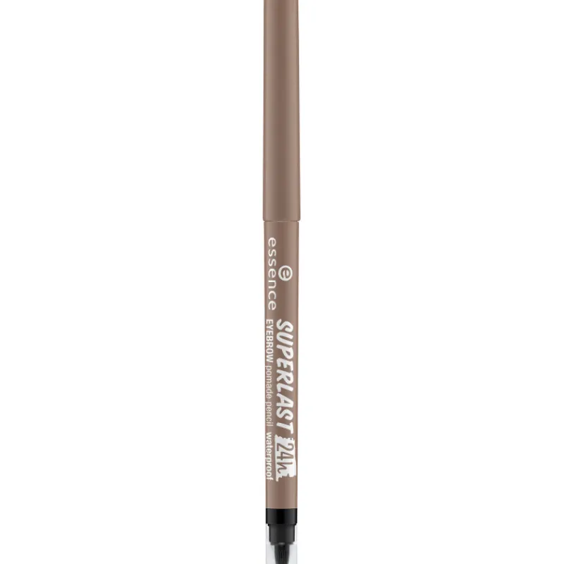 Vedenkestävällä Essence Superlast 24h Eye Brow Pencil Pomade Pencil Waterproof -kulmakynällä teet erittäin kestävän kulmameikin! Runsaasti pigmenttiä sisältävä kulmakynällä muotoilet ja korostat kulmia haluamallasi tavalla. Kulmakynän toisessa päässä on silikonisivellin kulmameikin häivyttämiseen ja pehmentämiseen. Lisäksi kynässä on integroitu teroitin. Kynässä on kätevä kierremekanismi.