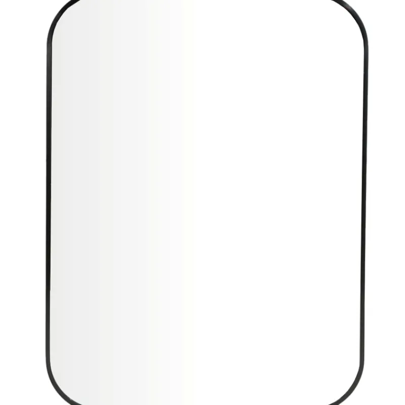 Kaunis Duon-peili voidaan kiinnittää seinään pystyasennossa. Peiliä reunustaa musta alumiinikehys, jonka paksuus on 2,5 cm.