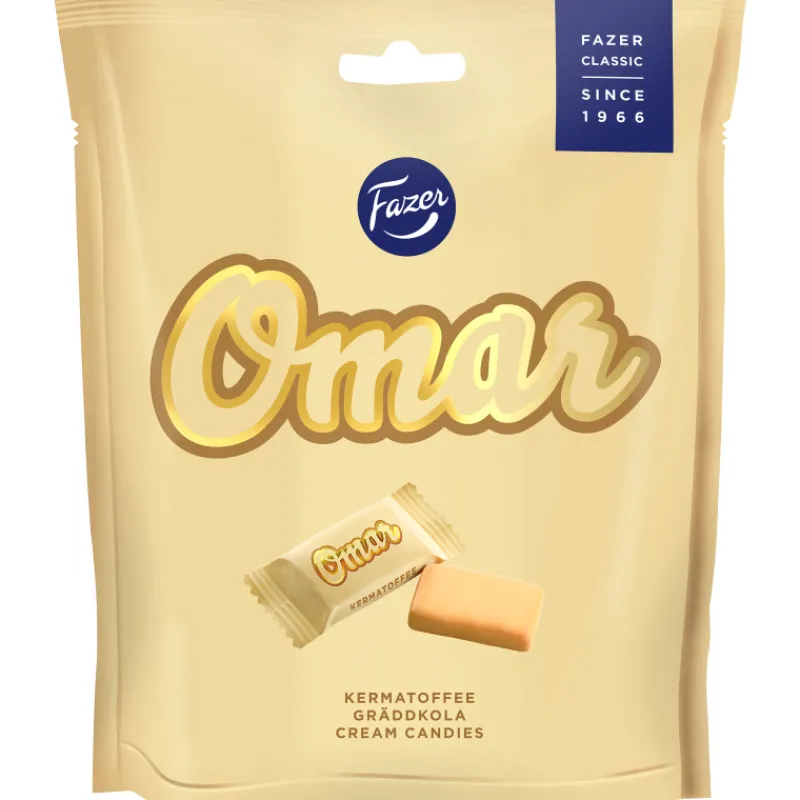 Fazer Omar on karamellien klassikko jo vuodesta 1966! Omar-makeisen kultainen kääre sulkee sisäänsä pehmeän kermakaramellin, jonka elegantti maku vie helposti vuosien ja vuosikymmenten taa.