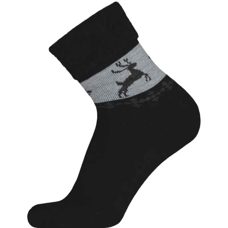 Lämpimät miesten pehmosukat, 1 pr/pkt. Sukissa on pehmeä pörrövuori ja varressa porokuvio.