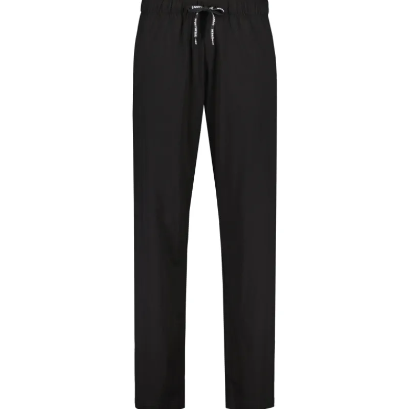 Salihousuissa on sivutaskut, suorat lahkeet ja leveä vyötärökuminauha solmittavilla nauhoilla.