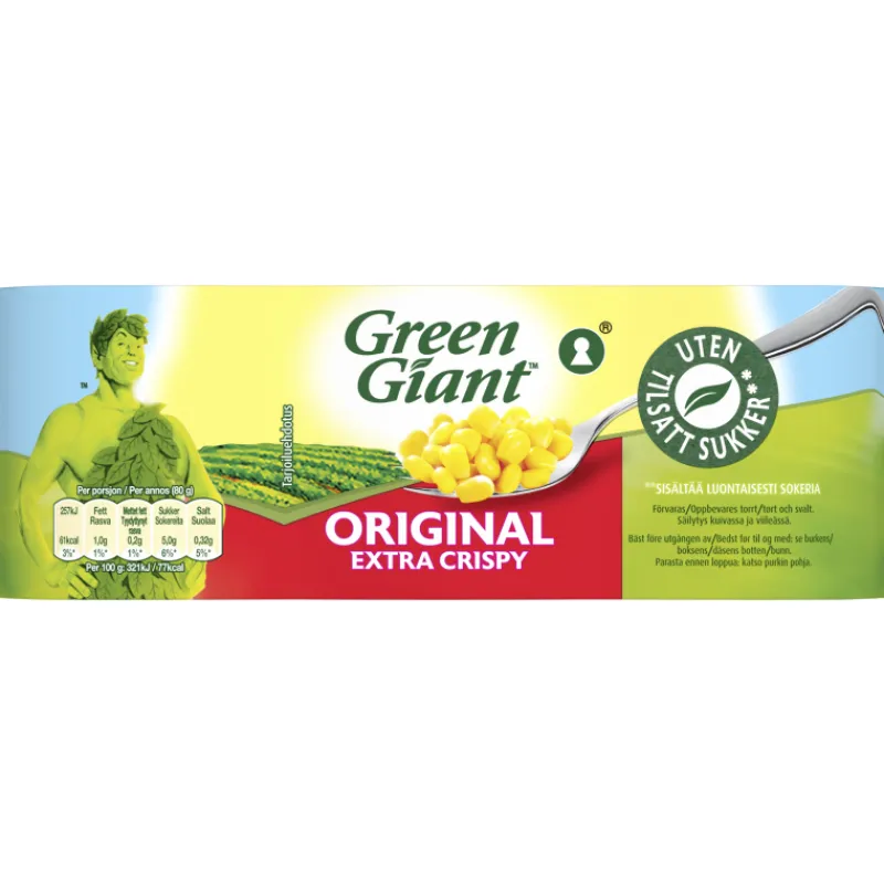 Kolmen purkin pakkaus makeaa ja rapeaa Green Giant -maissia. Huolellisesti valikoidut lajikkeet Etelä-Ranskassa pakataan tölkkeihin 12 h kuluessa sadonkorjuusta. Ei sisällä lisättyä sokeria.