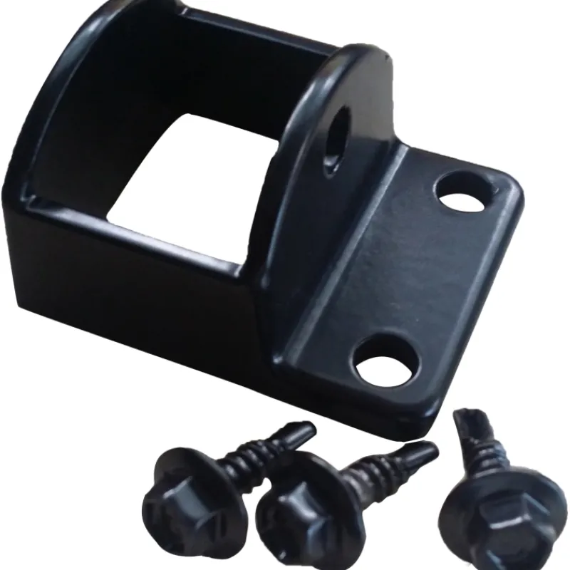 Kiinnikkeet voidaan asentaa aitatolppaan mille tahansa särmälle, jolloin tolpasta saadaan tarpeen mukaan päätytolppa, välitolppa tai kulmatolppa. Materiaali alumiinia. Mukana ruuvit.