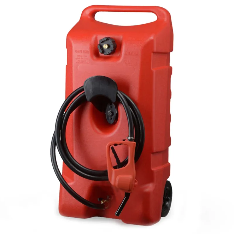 GXT polttoaineen kuljetuskärry, myös bensiinille. Käsikäyttöinen pumppu on integroitu tankkauspistooliin. Manuaalipumpulla tankkaat koneet nopeasti ja turvallisesti. Letkussa sulkuventtiili. Säiliö varustettu huohottimella. Säiliötä voi kantaa tai vetää kahvasta, alla kaksi 6″ pyörää.