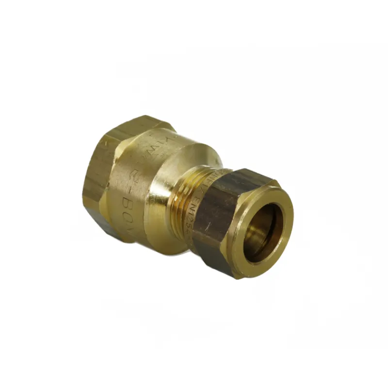 Messinkinen puserrusliitin suora sisäkierteillä. Koko: 1/2″-15.