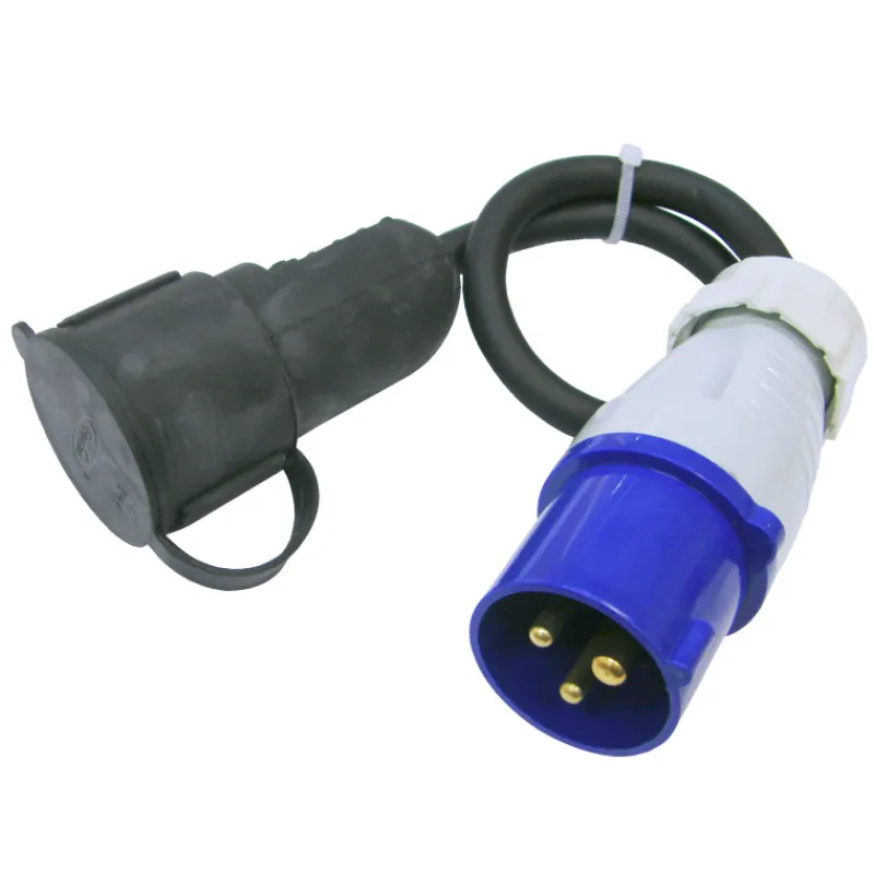 Adapteri mm. asuntovaunu-, asuntoauto- ja veneilykäyttöön. Adapterissa on johdon toisessa päässä maadoitettu pistorasia ja toisessa päässä 3-napainen pistotulppa (uros).