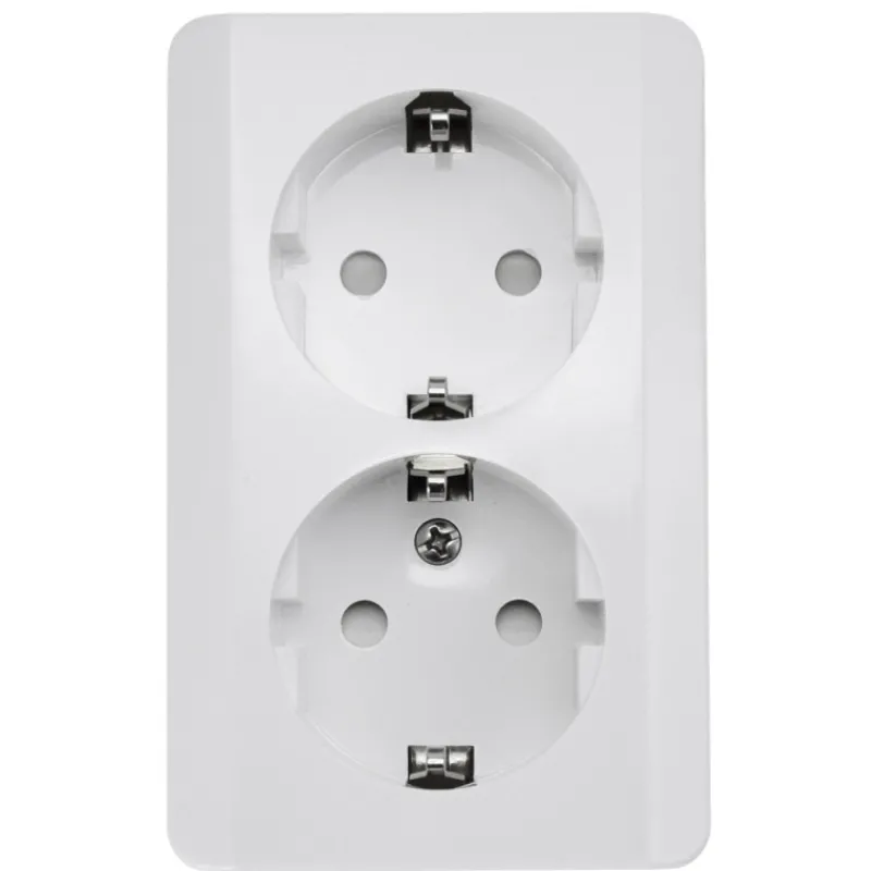 2-osainen maadoitettu pistorasia. Pinta-asennettava.