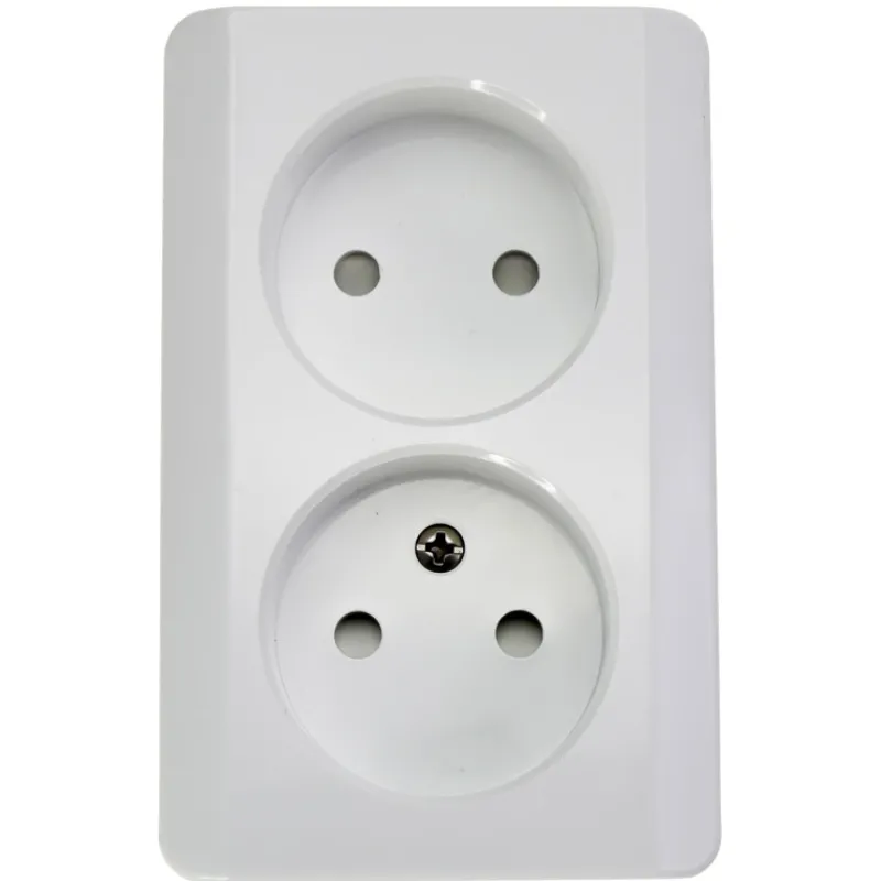 2-osainen maadoittamaton pistorasia. Pinta-asennettava. Taajuus 50 Hz, suojausluokka IP20, materiaali PC (halogeeni vapaa), ruuviliittimet, 16A 250VAC.