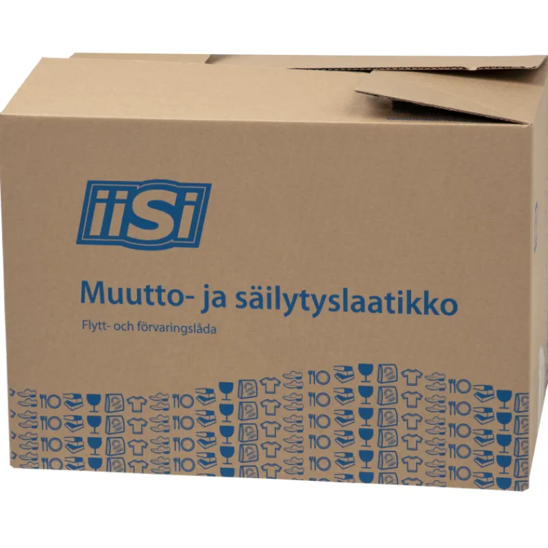 Monikäyttöinen Iisi-muuttolaatikko, jota voi hyödyntää muuton yhteydessä tai tavaroiden säilytyksessä. Tukevat kantokahvat. Mitat 475 x 315 x 328 mm.