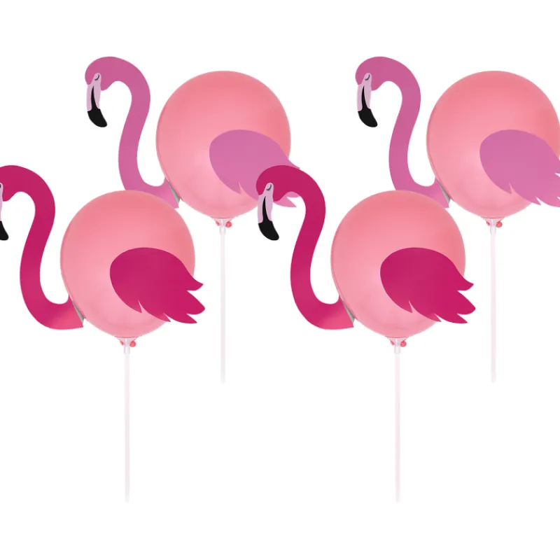 Flamingoteemaiset ilmapallot tuovat hauskasti tunnelmaa esimerkiksi lasten juhliin. Pakkaus sisältää neljä ilmapalloa ja ilmapallotikkua.