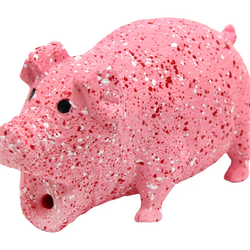 Kevyt ja ontto lateksinen possu, jolla on hauskan röhkivä ääni. Pituus 15 cm. Väri pinkki.