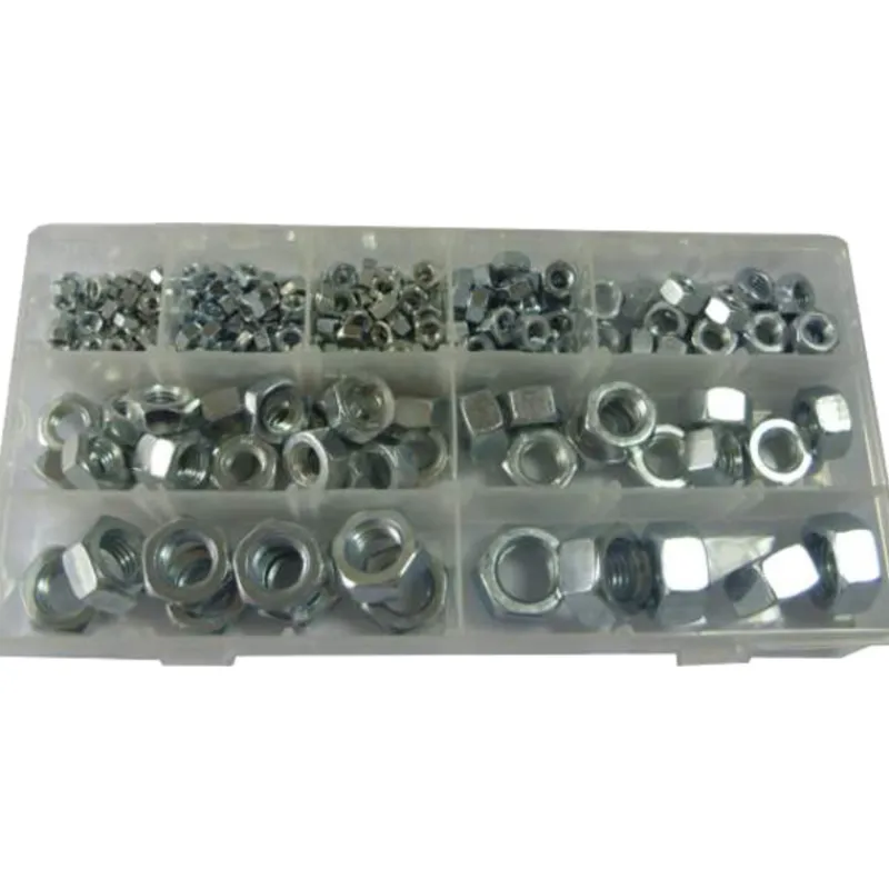 243 osainen mutterilajitelma. Sisältää: 50kpl M3, 50kpl M4, 50kpl M5, 30kpl M6, 20kpl M8, 20kpl M10, 10kpl M12, 8kpl M14, 5kpl M16.