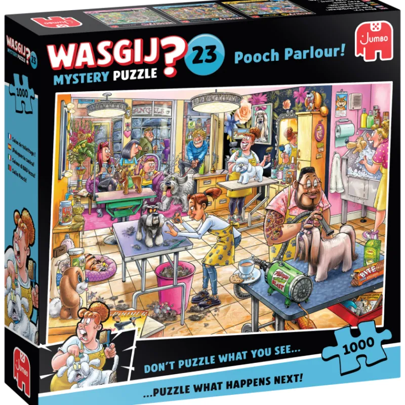 Suosittuun Wasgij-palapelisarjaan kuuluva humoristinen Mystery 23 Pooch Parlour -palapeli antaa haastetta. Älä kokoa mitä kuvassa näet, vaan mitä tapahtuu seuraavaksi.