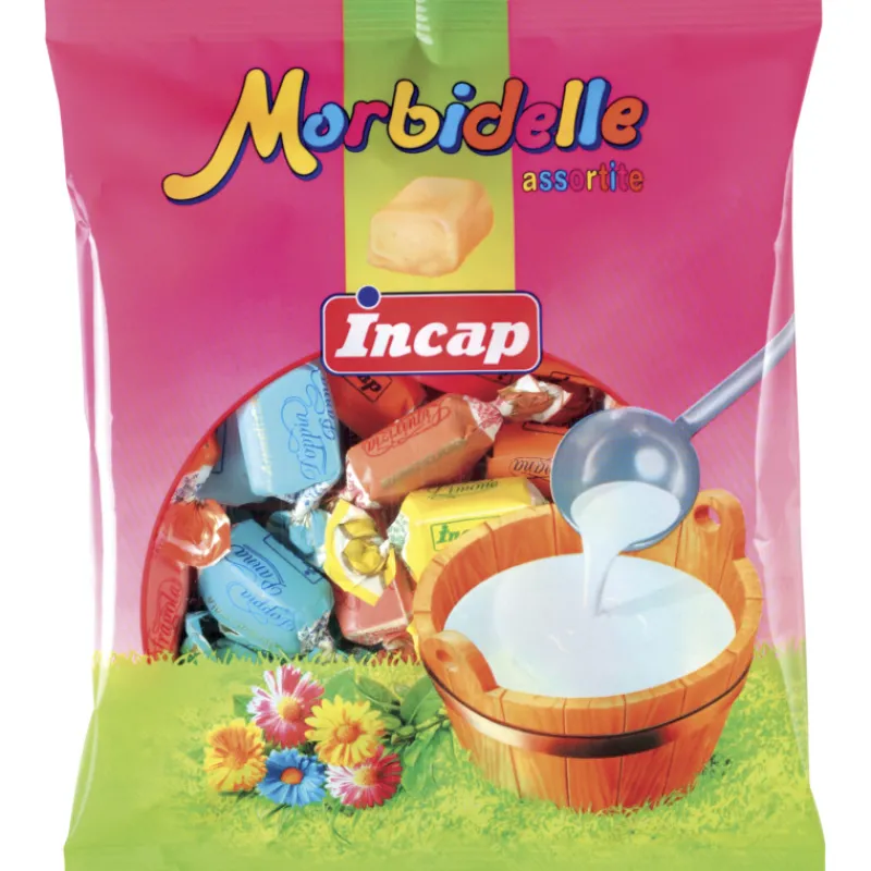 Herkullinen Toffeesekoitus Morbidelle sisältää maistuvia makeisia hedelmänmakuisilla täytteillä: suussa sulava valikoima sitruunan-, mansikan-, banaanin-, suklaan-, liköörin-, minttuliköörin-, maidon-, kookospähkinän-, vadelman-, kirsikan- ja kiwinmakuisia makeisia 500 g:n pussissa.
