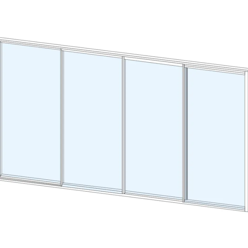 Toimitussisältö: liukulasivaunu 4 kpl, ylä- ja alaliukukiskot 1+1 kpl, pääty-/pystyprofiilit 2 kpl, klik-nupit 2 kpl, ruuvisarjoineen.