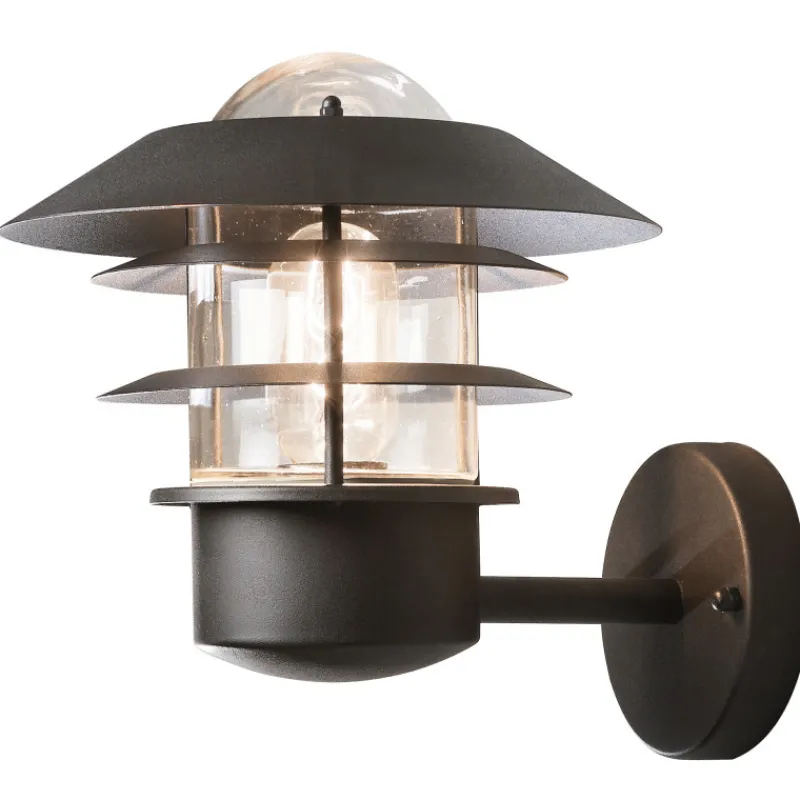 Ulkokäyttöön tarkoitettu seinävalaisin, jonka sinkitty teräskennomuotoilu siivilöi valon kauniisti.