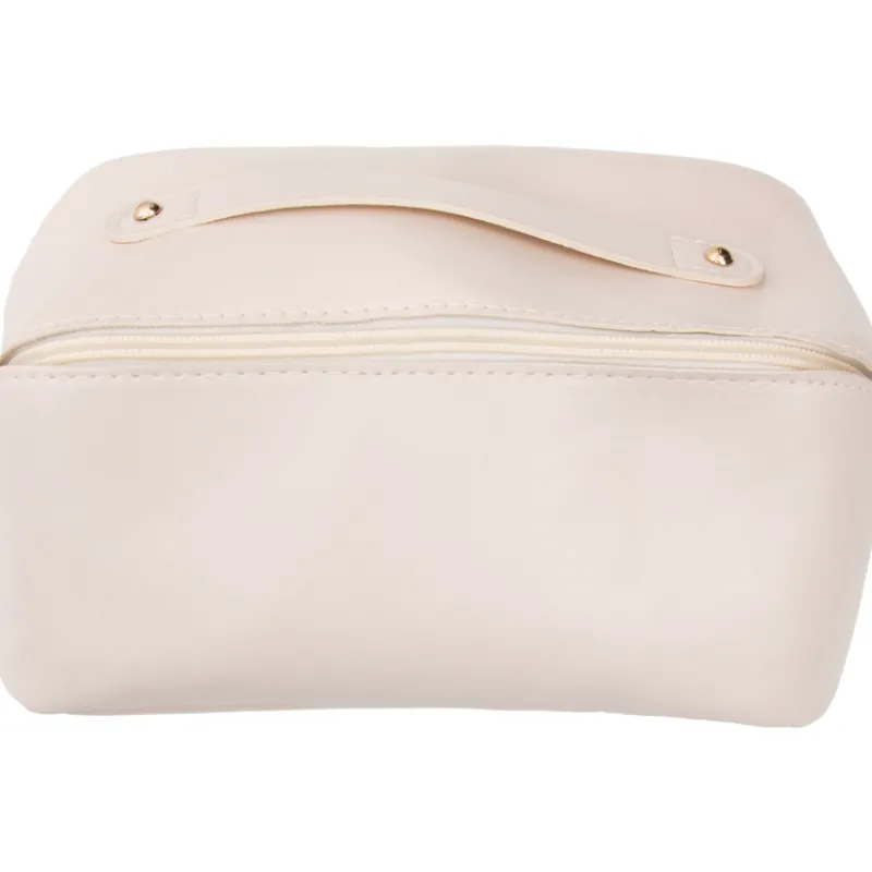 Creme toilettilaukku on tilava säilytyspaikka meikeille tai ihonhoitotuotteille.
