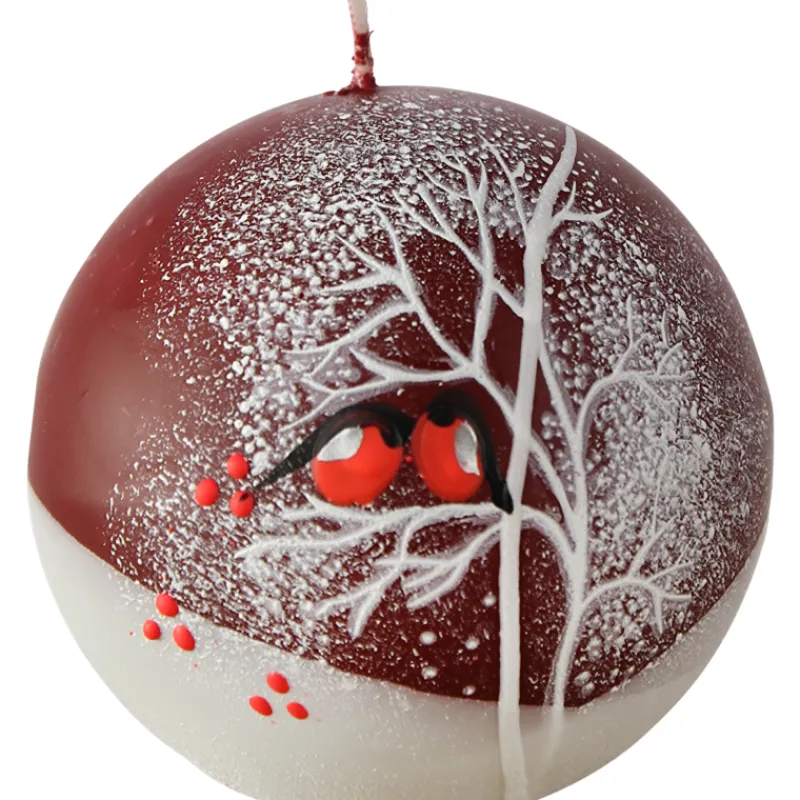 Punatulkkukuvan koristama Kotikulta-pallokynttilä tuo valoa talveen. Parafiinikynttilän halkaisija on noin 8 cm ja paloaika noin 22 tuntia.
