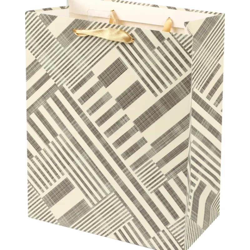 Tyylikkään raitakuvion koristama Kotikulta-lahjakassi on kätevä paketointiratkaisu. Lahjakassin koko on M (32 x 26 x 14 cm).