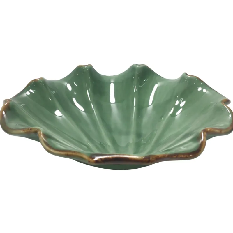 Keraaminen Kotikulta Solna -alunen toimii kauniina alustana esimerkiksi sisustusesineille tai säilytyspaikkana avainten kaltaisille pienille esineille. Vihreässä alusessa on kullanvärinen reunus.