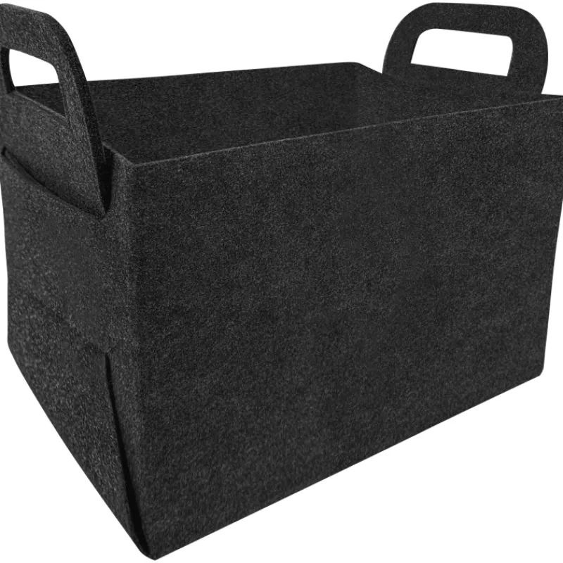 Tummanharmaa Kotikulta-säilytyskori kodin pienten tavaroiden säilyttämiseen. Huopakori taittuu kätevästi kokoon, kun sitä ei tarvita.