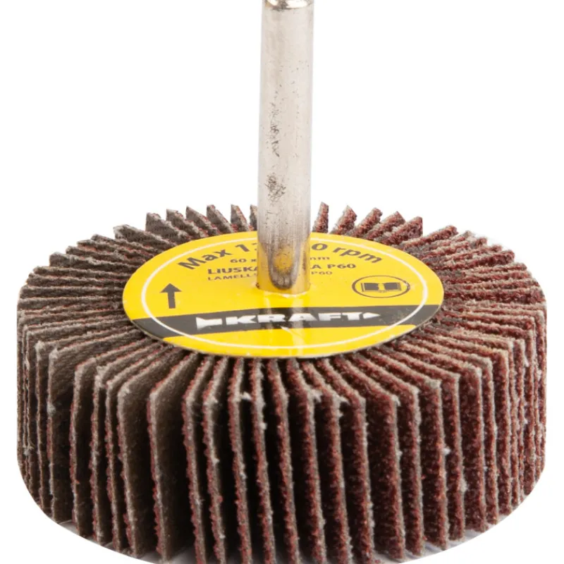 Kraft porakonekiinnitteinen liuskalaikka hiomiseen. Koko 60 x 20 x 6 mm. Karkeus 60. Liuskalaikassa on 6 mm kara. Kierroslukumäärä max 12 700 rpm.