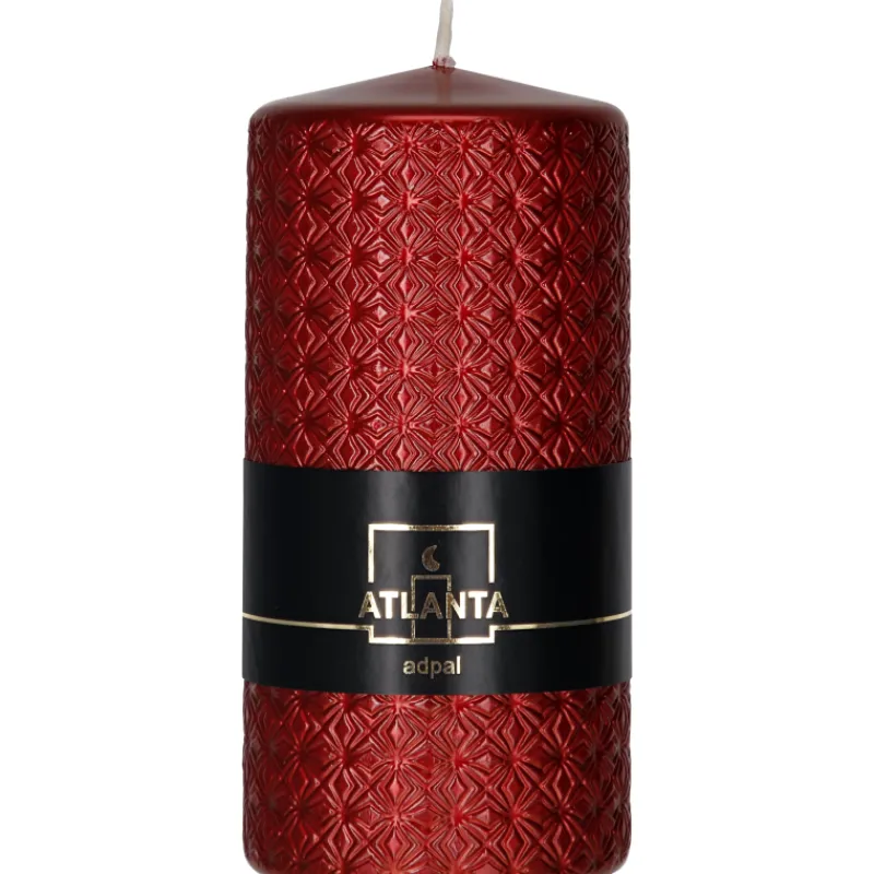 Punainen koristekynttilä tuo sisustukseen ripauksen eleganssia koristeellisesti kuvioidulla metallinhohtoisella pinnallaan. Parafiinikynttilän koko on 15 x 7 cm.