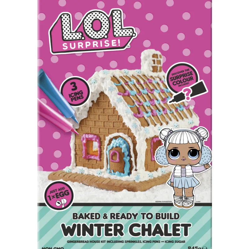 L.O.L. Surprise! Winter Chalet – DIY piparkakkutalo tarjoaa hauskan ja luovan elämyksen, jossa koko perhe pääsee rakentamaan ja koristelemaan oman piparkakkutalon. Pakkaus sisältää valmiiksi paistettuja piparkakkuja sekä värikkäät koristelukynät, joilla unelmatalon valmistus käy helposti.