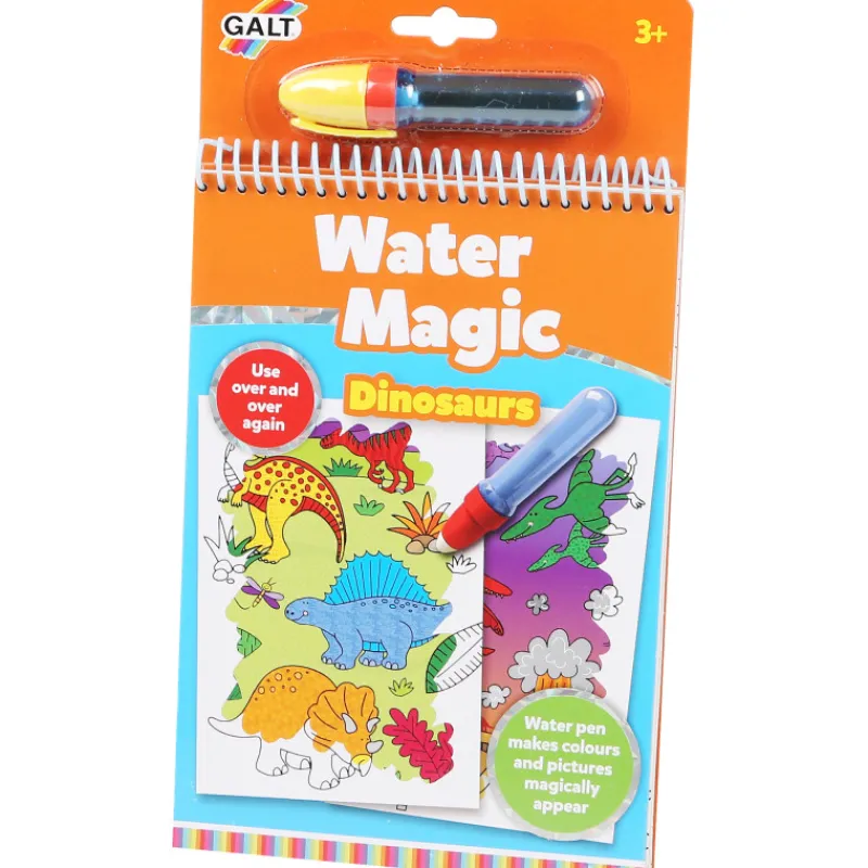 Värityskirja, jota voi värittää uudelleen ja uudelleen! Kuvissa dinosauruksia. Täytä kynä vedellä ja väritä kuvia. Värejä ja kuvioita ilmestyy sivuille. Kun kuva kuivuu, sivusta tulee taas valkoinen. Täydellinen mukaan matkalle!