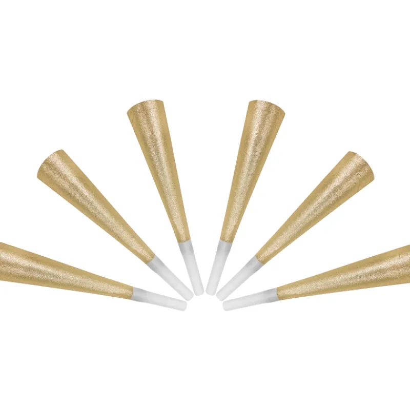 Kullanväriset Let’s Party -juhlapillit huolehtivat juhlavasta äänimaailmasta! Pakkaus sisältää kuusi partypilliä.